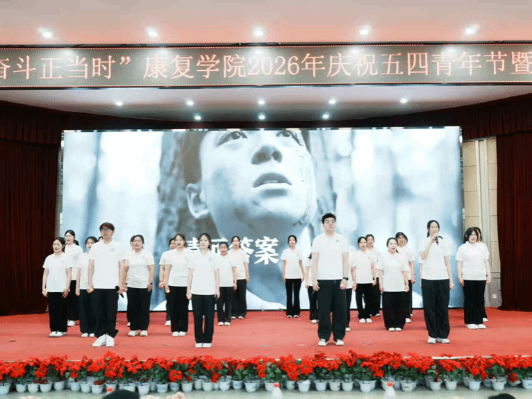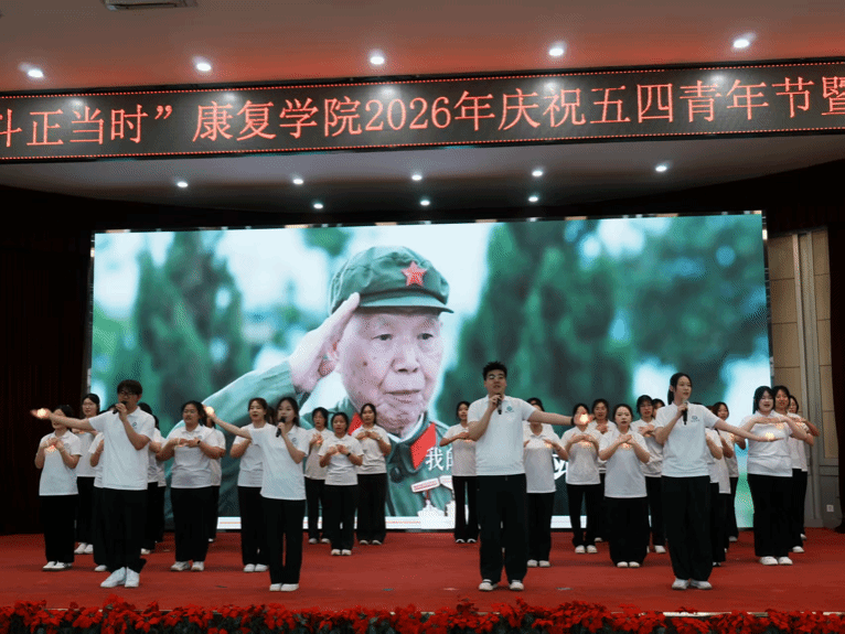 大会在合唱歌曲《有我》的激昂旋律中圆满落下帷幕。歌声慷慨嘹亮、振奋人心,饱含着青年学子对党和国家的赤诚热爱、对未来的美好憧憬,彰显出康复学子心怀家国、勇毅前行、矢志奋斗的坚定初心。