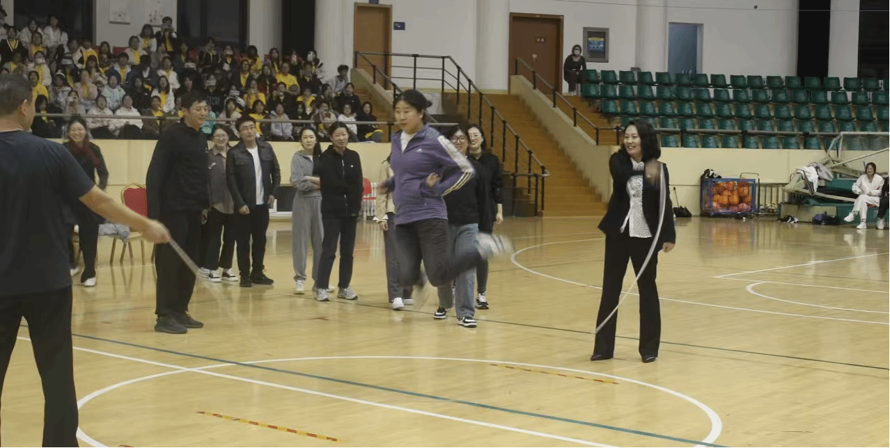 当日晚上在学校的体育馆内拉开帷幕。赛前,各班级在助导和负责人的精心组织下,进行了紧张而有序的训练。同学们利用课余时间,刻苦练习,力求在比赛中发挥出最佳水平。比赛当天,随着裁判员的一声令下,各班级迅速进入状态,配合默契,齐心协力,以惊人的速度和节奏完成了一次次精彩的跳跃。赛场上,摇绳队员手腕翻飞,绳子在空中划出一道道流畅的弧线;跳绳队员身姿矫健,腾空跃起,展现出速度与激情、团结与活力的完美结合。