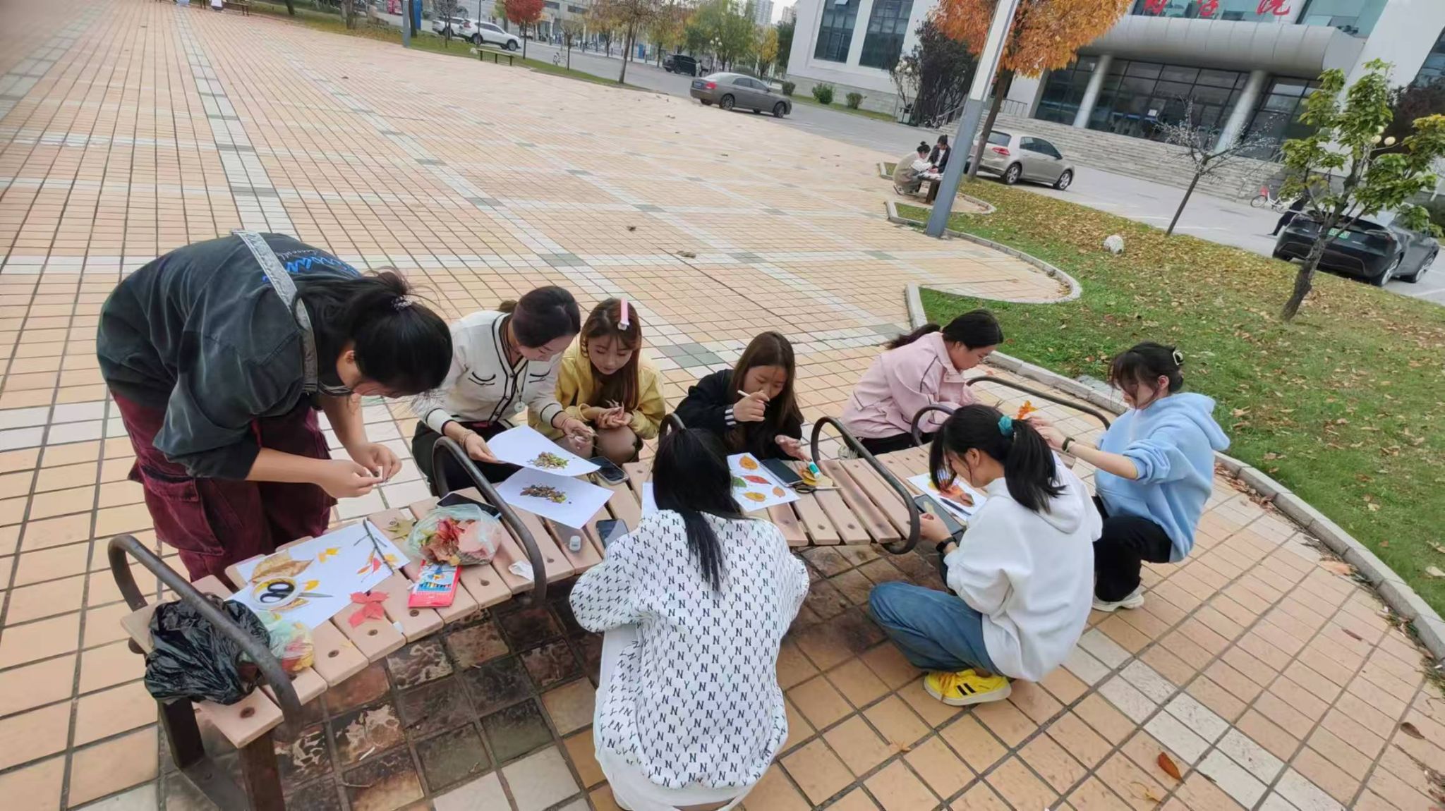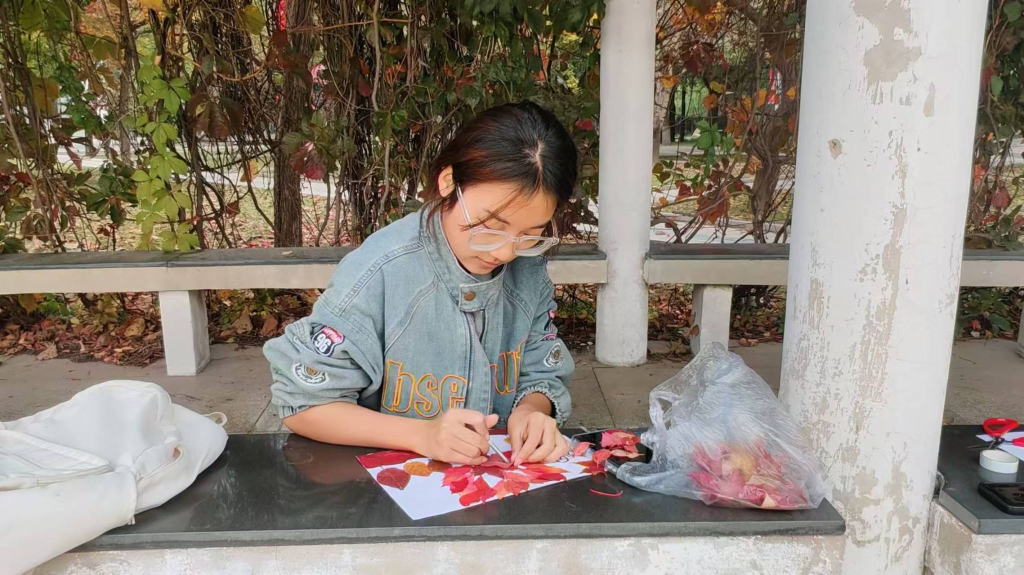活动当天,同学们满怀热情地走出教室,走进校园的每一个角落,细心挑选着形态各异、色彩斑斓的落叶。他们将这些大自然的馈赠小心翼翼地收集起来,准备在自己的创意世界里编织出一幅幅美丽的画卷。