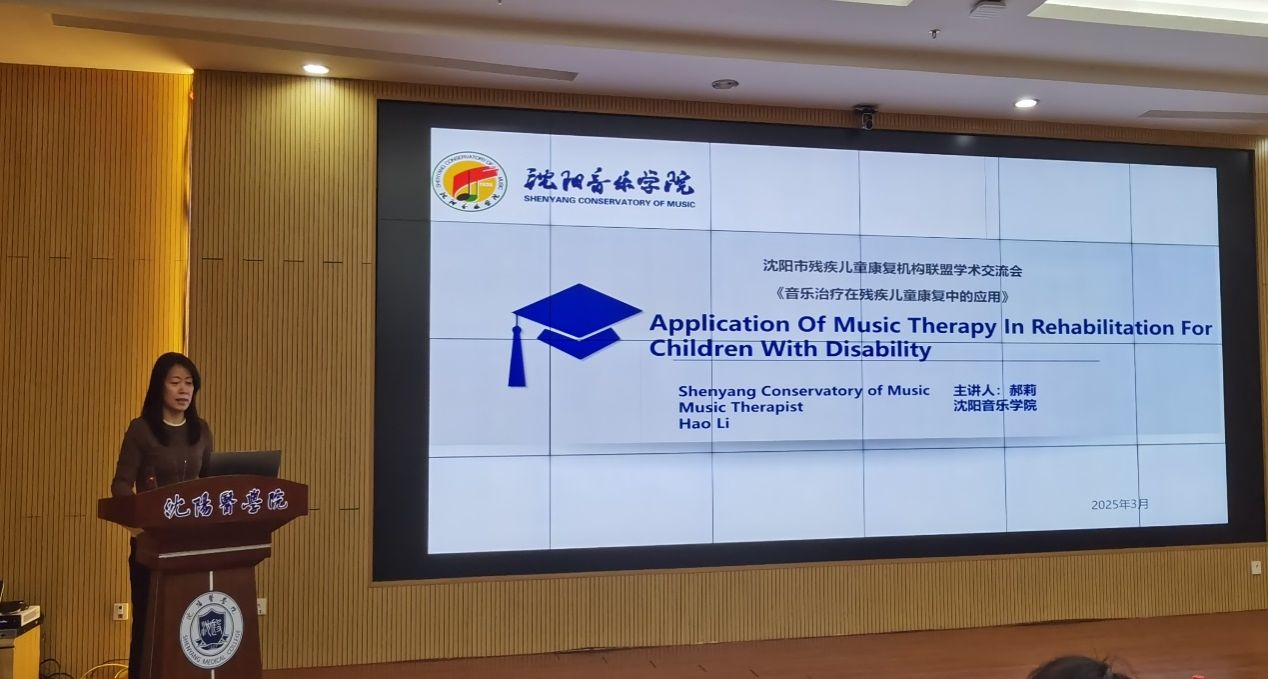 本次会议邀请了沈阳音乐公司音乐科技系郝莉副主任做了题为《音乐治疗在残疾儿童康复中的应用》的学术分享,郝莉副主任是音乐治疗学博士、副教授,同时也是澳大利亚国家注册音乐治疗师、世界音乐治疗师协会会员、世界音乐教育协会会员。郝主任在此次分享中详细介绍了国内外音乐治疗在残疾儿童康复领域的发展现状,并结合音乐治疗案例进行深入分析,让与会人员深切体会到音乐治疗在残疾儿童康复中的独特魅力与显著效果。并且报告过程中还设置了现场互动环节,与会人员积极参与,现场气氛热烈。