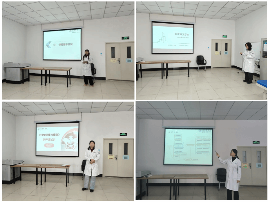 活动分为两个环节。首先进行的是新开课试讲,许玉冰、张旭、张一婷、吕欣四位员工分别围绕《康复医学导论》《临床康复学Ⅱ》《妇女健康与康复》《作业治疗基本理论》四门课程进行阐述。她们从教学设计、教学方法、课程内容、课程特点及学情分析等方面进行了系统展示。分享结束后,在场员工积极参与讨论,现场气氛热烈。大家在思想碰撞中不断迸发教学新想法,为新学期教学工作提供了新思路。